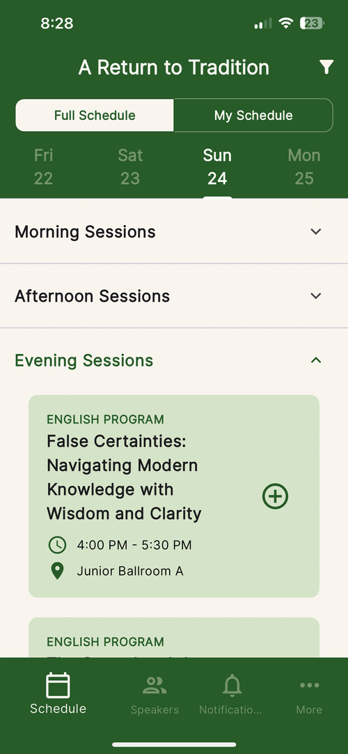 The need for an app arose after several successful conferences in order to help attendees best utilize their time at the conference. It includes personalized schedules, information about all sessions as well as bios for speakers and more information about the conference and organization in general.